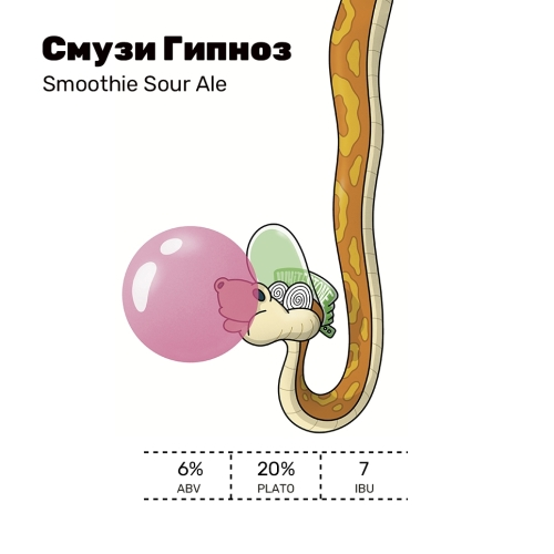 Далеко-далеко, в непролазных глубинах джунглей, обитает причудливый удав. Любому заблудившемуся путнику он предлагает насладиться освежающим смузи. Только это не обычный смузи: один глоток — и вы под гипнозом. Вот уж хитрый змей, теперь от его напитка не оторваться!
