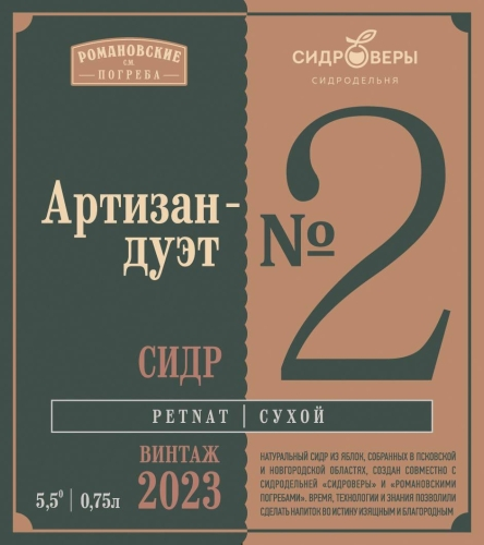 Натуральный сидр из яблок, собранных в псковской и новгородской областях, создан совместно с сидродельней «Cидроверы» и «Романовскими Погребами». Время, технологии и знания позволили сделать напиток во истину изящным и благородным