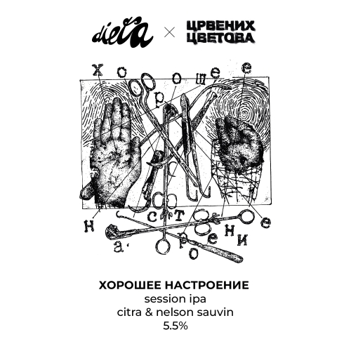 Хорошее настроение - коллаборация с нашими друзьями, музыкантами группы ЦРВЕНИХ ЦВЕТОВА. Session IPA w/ Citra & Nelson Sauvin.