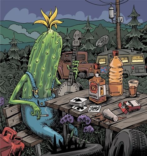 Свежий огурец, укроп, черный молотый перец, лавровый лист, чеснок, репчатый лук, хрен, бурбон.
